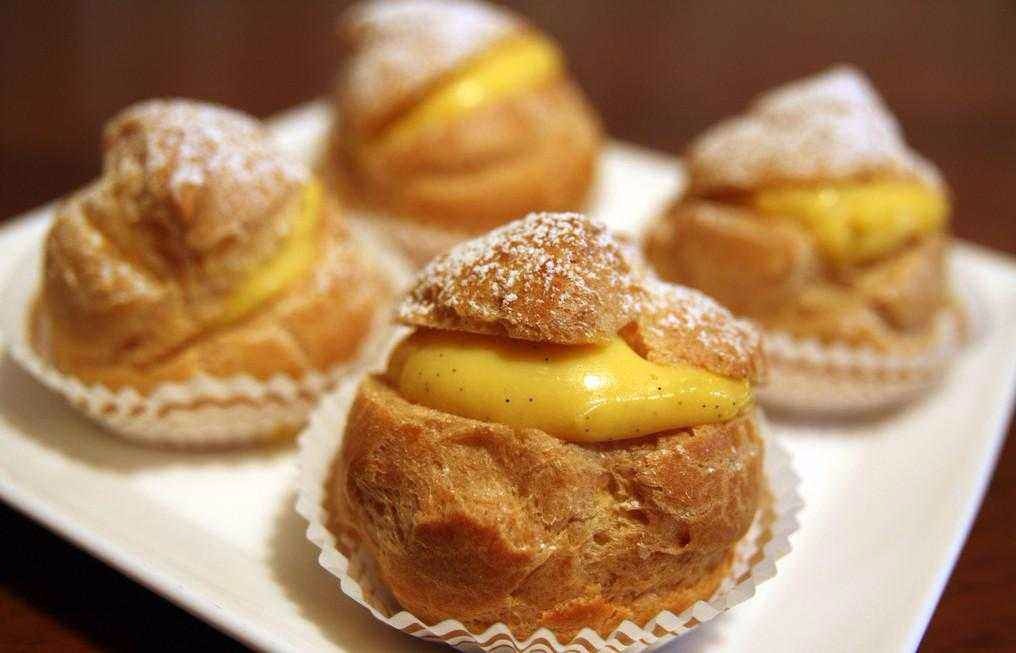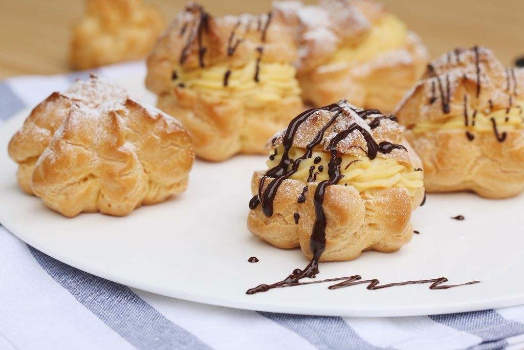 泡芙系列:a.品种:奶油泡芙、闪电泡芙、巧克力泡芙、冰淇淋泡芙、花式沙司泡芙,菠萝脆皮泡芙;b.泡芙材料的选择,泡芙浆的调制;c.泡芙花式的制作技巧,泡芙空腔的烤制技巧;d.花式泡芙的制作技术